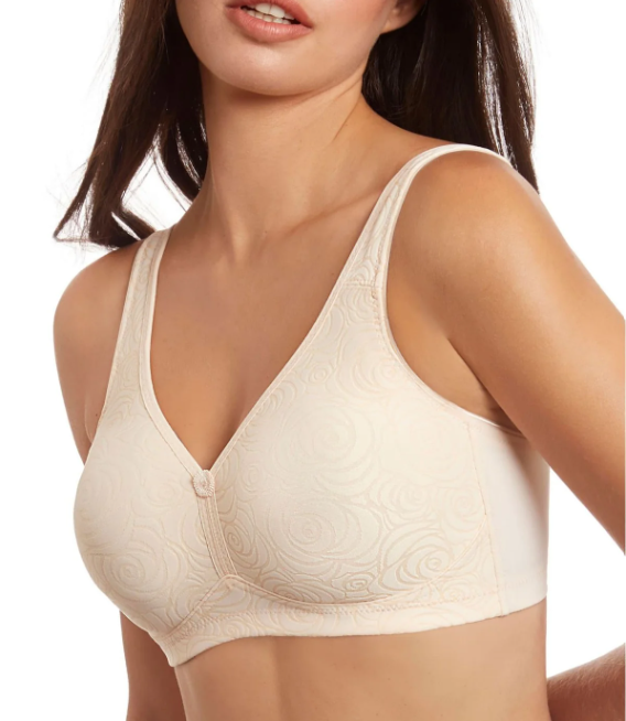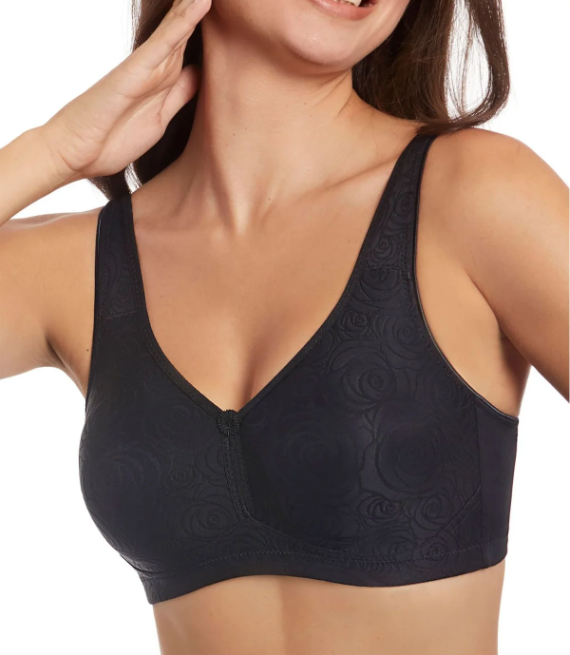 Sujetador sin aros, sin relleno. Fabricado con un elegante tejido estampado y un sutil escote en forma de V.
