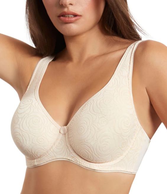 Sujetador con aros, sin relleno y de copa preformada. Fabricado con un elegante tejido estampado y un sutil escote en forma de V.